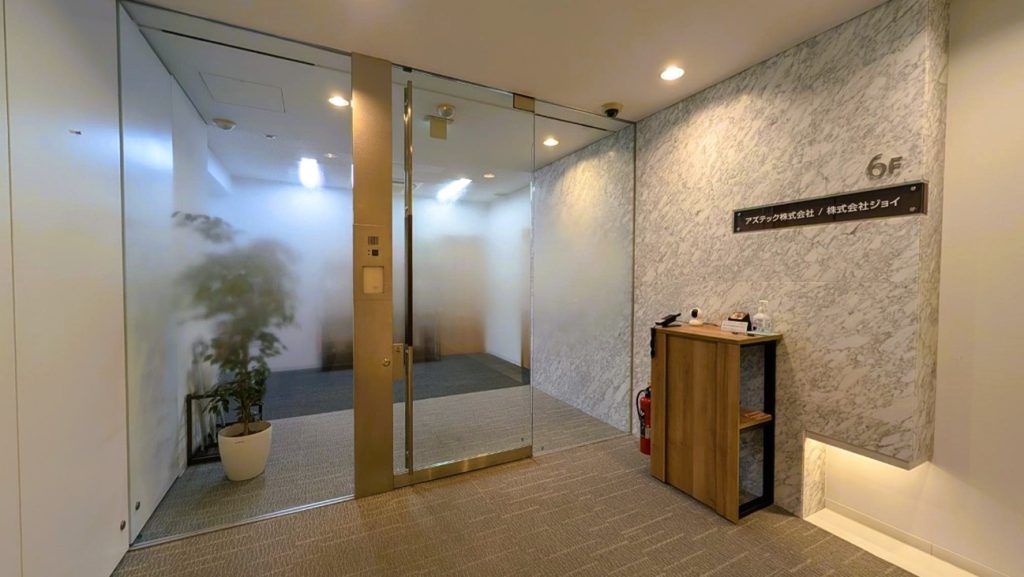 ご来社の際は、エレベーターで6階受付までお越しください。6階でエレベーターを降りると、すぐ当社オフィスの受付です。当社ではお客様の機密情報を取り扱うため、オフィスの入退室にはセキュリティカードを使用し、オートロックで管理しています。